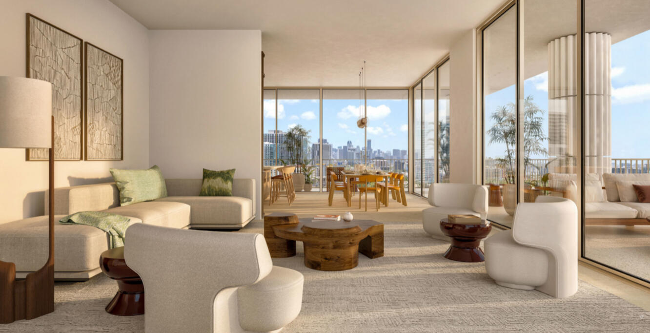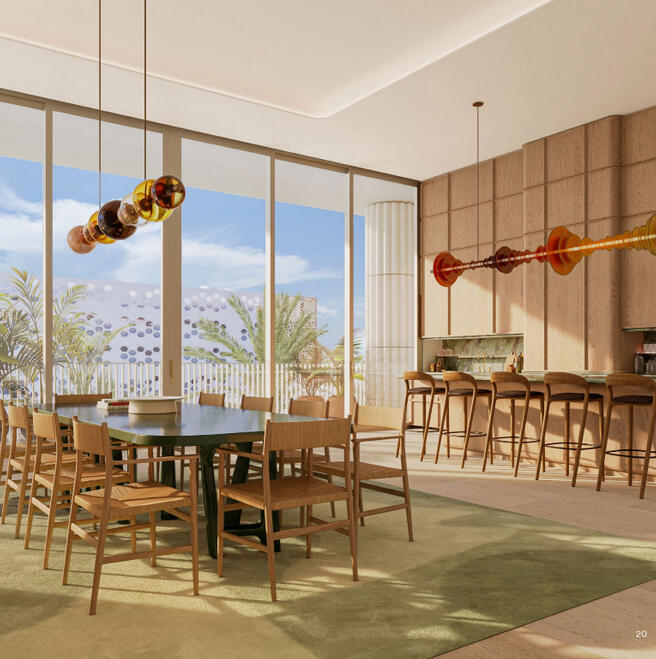 Todas las residencias en Miami Design Residences cuentan con interiores cuidadosamente diseñados, amplios espacios llenos de luz natural, terrazas privadas, ventanas de piso a techo, acabados de primera calidad y cocinas refinadas, creando un equilibrio perfecto entre diseño contemporáneo y lujo cotidiano.