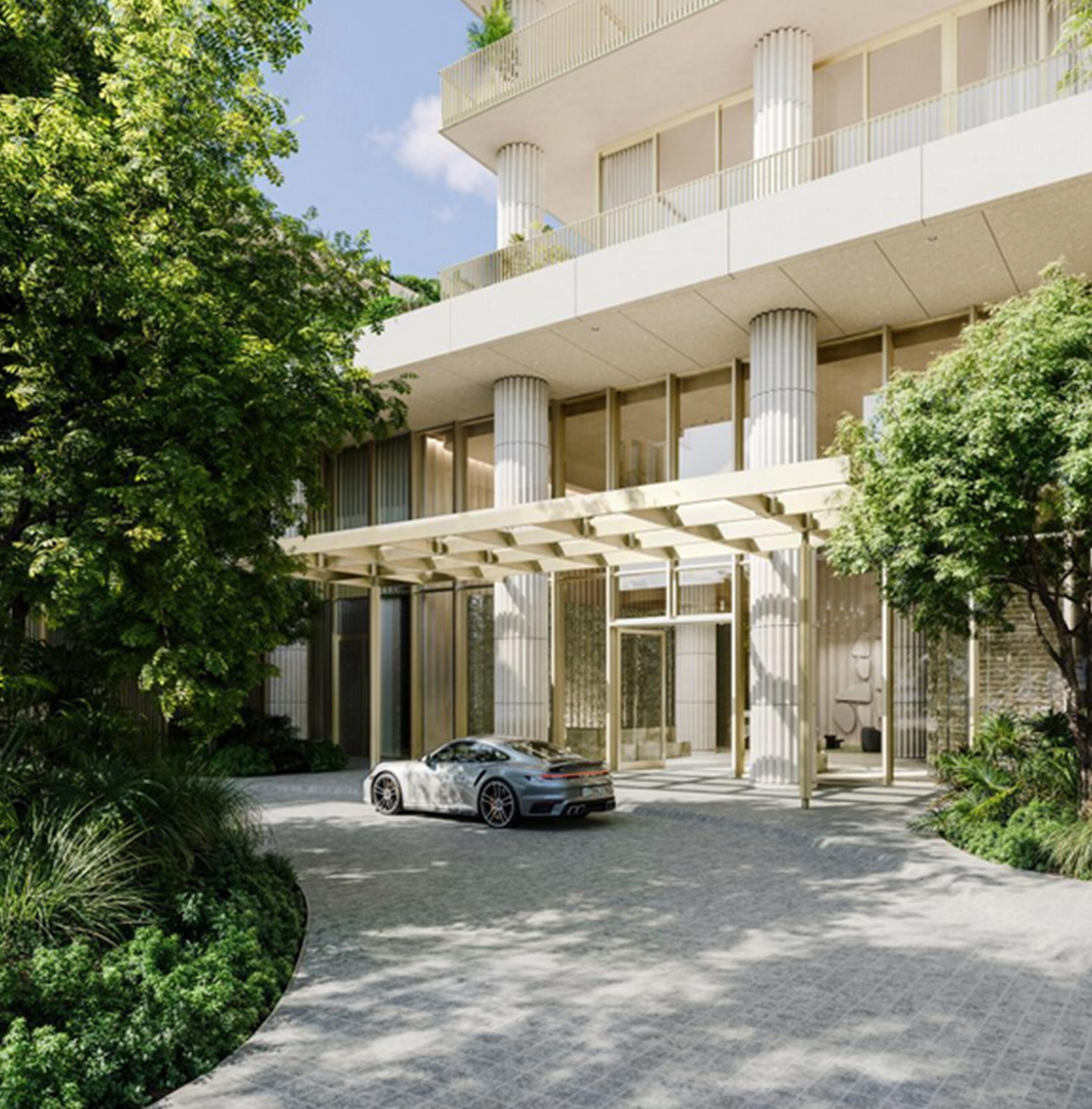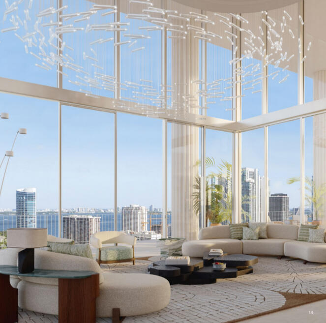 El edificio se caracteriza por su fachada de columnas de cerámica personalizada, meticulosamente diseñada para capturar y reflejar la luz natural de Miami, creando ritmo, profundidad y una presencia arquitectónica atemporal. Las ventanas de piso a techo con elegantes marcos hechos a medida, las amplias terrazas envolventes y una paleta cuidadosamente seleccionada de materiales naturales refinados difuminan la frontera entre el interior y el exterior. La luz, la proporción y el diseño se combinan para dar forma a espacios habitables fluidos y a un estilo de vida elevado y perdurable.
